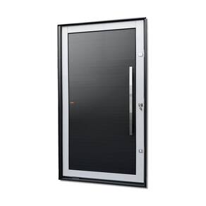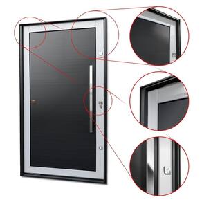 Portas Pivotante de Alumínio, Linha Elite, Pintura Eletrostática Mix Preta, 1 Folha de Abrir para o Lado Direito, Lambris Horizontais, , Puxador Milão 100 Cm Polido, Altura 216 Cm, Largura 100 Cm, Requadro 11,5 Cm, Garantia de 5 anos contra defeitos de fabricação.