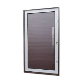 Portas Pivotante de Alumínio, Linha Elite, Pintura Eletrostática Mix Corten, 1 Folha de Abrir para o Lado Direito, Lambris Horizontais, , Puxador Milão 100 Cm Polido, Altura 240 Cm, Largura 130 Cm, Requadro 11,5 Cm, Garantia de 5 anos contra defeitos de fabricação.