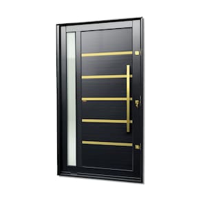 Portas Pivotante de Alumínio, Linha Elite, Pintura Eletrostática Preta, 1 Folha de Abrir para o Lado Direito, Vidro Liso Incolor 5mm Temperado, Lambris Horizontais e 5 Frisos Escovados, Dourados e Envernizados, Puxador Milão 100 Cm Escovado Dourado, Altura 240 Cm, Largura 120 Cm, Requadro 11,5 Cm, Garantia de 5 anos contra defeitos de fabricação. Ambientes Recomendados: Externo Acabamento do Puxador: Fosco Acompanha Batente: Sim Acompanha Dobradiça: 02 Acompanha Fechadura: Sim Acompanha Guarnição: Não Acompanha Manual de Instalação: Não Acompanha Puxador: 01 Altura: 240 Ambiente Principal: Sala de Estar Cor: Preto Cor do Batente: Preto Cor do Produto: Preto Cor do Vidro: Incolor Elétrica: Não Escala de Brilho: Fosco Espessura: 11.5 Espessura do Vidro: 5 Isolamento Acústico: Não Itens Inclusos: 1 Porta Pivotante Completa, com Batente, Pivots, 1 Fechadura rolete principal e 2 fechaduras auxiliares, Vidro lateral, Puxador duplo de 100 cm. Lado de abertura: Direita Largura: 120 Largura do Batente: 11.5 Linha ou Coleção: Elite Manual de Montagem e Instalação: https://product-hub-prd.madeiramadeira.com.br/935416/documents/c10132c1-6d25-4966-9691-c2fd61961e6898manualesquadriasaluminio.pdf Material da Dobradiça: Aço inox Material do Batente: Alumínio Material do Puxador: Alumínio Necessita Montagem: Não Número de Folhas: 01 Origem do Produto: Nacional Peso: 51 Tamanho: 240cm x 120cm Tipo de Dobradiça: Pivotante Tipo de Parede: Alvenaria Tipo de Porta: Pivotante Tipo de Puxador: Externo Tipo de Vidro: Temperado Vidro incluso: Sim