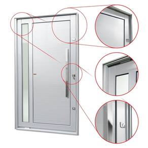 Itens Inclusos: 1 Porta Pivotante Completa, com Batente, Pivots, 1 Fechadura rolete principal e 2 fechaduras auxiliares, Vidro lateral, Puxador duplo de 100 cm.