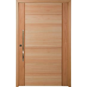 A Porta Pivotante Pv95 Clean Eucalipto 210x102cm Marroml da Cruzeiro possui design com duas linhas verticais na borda e diversas linhas horizontais ao longo do corpo. É produzida em madeira Eucalipto tipo Grandis 100% Reflorestada.