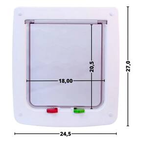 Como saber se essa porta serve para seu pet - meça seu pet: Largura: meça a parte mais larga do corpo do pet peito ou quadril e adicione 2 a 3 cm. Altura: meça do peito até o ombro e adicione 2 a 3 cm. - se as medidas forem menores que 18 cm largura x 20,5 cm altura , a porta será adequada