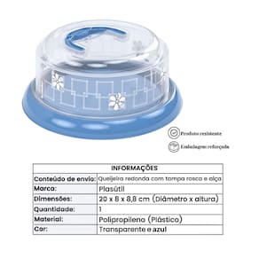 Porta Queijo Queijeira de Plástico Redonda Plasutil Azul