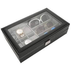 Deixe os seus relogios organizados com o nosso lindo porta relogio. Produzido em material resistente e duravel, possui 9 compartimentos para organizar não apenas relogios, mas também pulseiras, óculos de sol, o que mais desejar. Seu interior é revestido de camurça e mantém os relógios seguros e livres de arranhões. A tampa possui transparencia para melhor visualização dos relógios. Cada compartimento acompanha 6 almofadas.