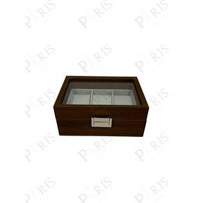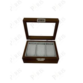 Porta Relógios em Madeira e Vidro Marrom 3 Divisórias 17cm 14655-PL Cód: 14655-PL