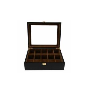 Maleta 10 Relógios em Madeira Escura Tampa Vidro/Marrom Interno CARACTERÍSTICAS DO PRODUTO: Material: madeira escura Interior: Possui almofadas e tecido aveludado Fecho: Feito em metal Tampa: Contorno em madeira com vidro no centro Medidas: Medidas do estojo: 26cm x 20cm x 8cm Comprimento x Largura x Altura Medidas das divisórias: 4.5cm x 9.0cm x 5.0cm Largura x Comprimento x Altura Medidas das almofadas: 4,5cm x 7,3xm x 3,5cm Largura x Comprimento x altura Marca: Ph Martins Ean: 7908289221327