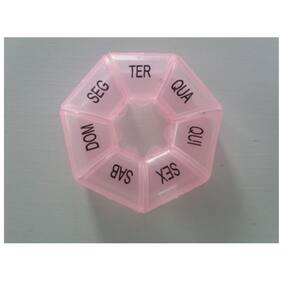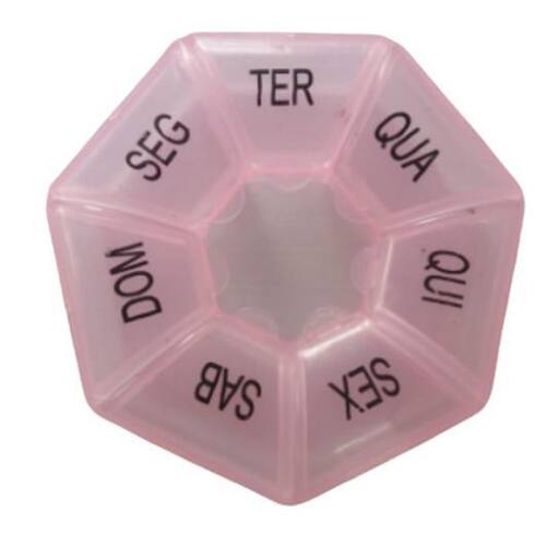 Porta Remédios Semanal 7 Divisórias 7 Dias Caixa Comprimidos Cor: Rosa Características do Produto Porta comprimidos portátil e compacto para que você tenha o em mãos na hora certa; 7 compartimentos para comprimidos / 1 para cada dia; marcação dos dias em braile na tampa do compartimento; personalizável, tanto o porta comprimidos quanto a embalagem. Informações Técnicas capacidade: 7 compartimentos para armazenamento de comprimidos; dimensões do produto: 8 x 8 x 3 mm; material: polipropileno. Marca: Não Informado Ean: 7897523144686