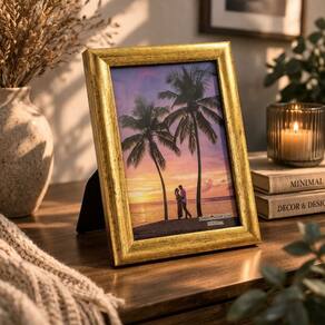 Sua moldura em madeira com tonalidade dourada destaca ainda mais suas fotos, enquanto o vidro frontal garante proteção contra poeira e danos, mantendo suas lembranças sempre bem preservadas.