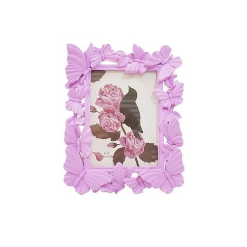 Porta retrato rosa para múltiplas fotos na forma retangular. Detalhes em forma de borboletas. Pendure no quarto de casa e deixe as melhores fotos da família expostas. - material: plástico; - para - 1 foto 18 x 13 cm