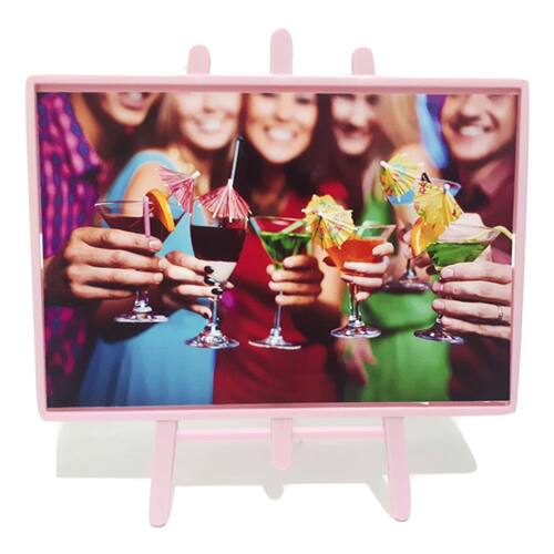 Caixa com 20 unidades O porta retrato cavalete é composto por 2 peças uma base fabricada em PSAI uma lente fabricada em PS cristal Montagem : Colocar uma foto no tamanho 10 x 15 cm e encaixar a tampa O porta retrato cavalete é um fotoproduto muito utilizado para lembrancinhas de aniversário, foto na festa , fotocabine , redação escolar, enfeite de centro de mesa, eventos porativos e para buffet infantil Marca: Jax brindes