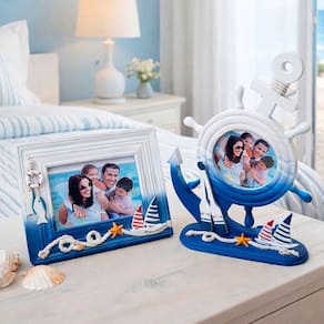 Deixe sua decoração com o charme do estilo náutico! O Kit 2 Porta-Retratos é perfeito para quem ama o tema marítimo e quer transformar qualquer ambiente com elegância e personalidade