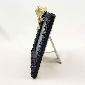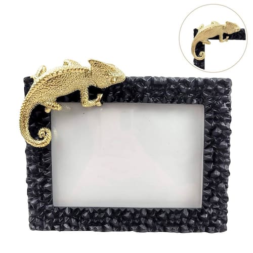 Transforme Seu Ambiente com Charme e Arte: Seja como peça central na decoração ou como complemento, nosso porta-retrato preto com camaleão dourado é a escolha perfeita para quem valoriza beleza e criatividade.