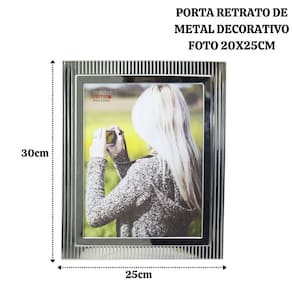 Informações Ténicas: Composição: Metal e vidro. Altura do porta retrato: 30cm. Comprimento: 25cm. Espessura: 1cm. Peso: 640gramas. Validade: Indeterminada.