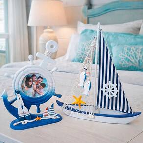 Leve o charme do litoral para dentro da sua casa com este lindo kit decorativo náutico! Composto por 1 porta retrato e 1 barco decorativo, é perfeito para criar um ambiente aconchegante, leve e com aquele toque especial de casa de praia
