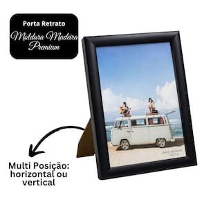 Porta-Retrato Moldura de Madeira Black Prime Classic 20x25cm – Acabamento Fosco com Suporte Vertical e Horizontal