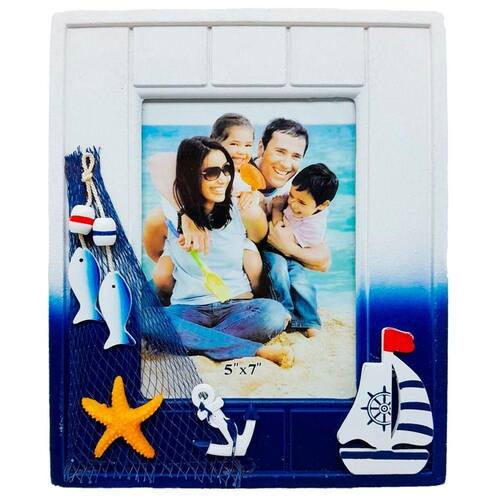 Porta Retrato Náutico Marítimo Retangular Em Madeira 5X7 -