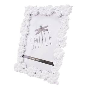 Porta Retrato Plástico Branco Flores Para Decorar 13X18 Cm