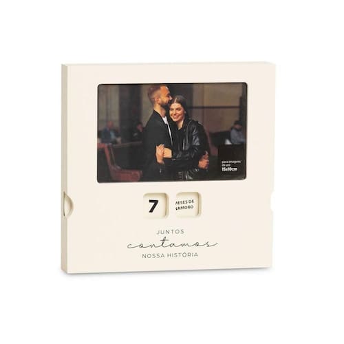 Porta Retrato Roletas Nossos Recordes Ideal para presentear a pessoa amada e ainda decorar o seu cantinho com muito carinho, nosso Porta-Retrato Roletas Nossos Recordes chegou para te ajudar a eternizar aquele momento especial com charme e criatividade! Ideal para acomodar 1 foto de até 15 cm x 10 cm, essa belezinha conta com 2 roletas laterais, sendo uma, com números (de 1 a 9) e outra, com os recordes que vocês alcançaram juntos (ex.: dias sem furar a academia, dias sem pedir delivery etc. Além de meses e anos de namoro). Assim, você e sua cara metade vão conseguir contar suas conquistas em casal e ainda dar aquele up na decoração! Afinal, juntos, vocês contam a sua história!