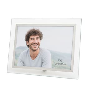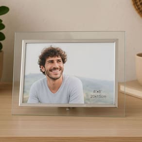 Decore seu espaço com classe e guarde suas melhores lembranças com o Porta-Retrato em Vidro com Borda Prata. Adquira já o seu!