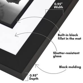 Americanflat Porta-retrato de 28 x 35 cm com detalhes decorativos no tapete interno - exibe fotos 20 x 25 cm com tapete ou 28 x 35 cm sem - Coleção varanda - Moldura preta com vidro resistente a