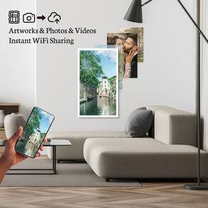 - Faça tudo com uma moldura de arte – Nossa moldura digital de 50 cm não apenas se ajusta às condições de luz ao redor para garantir o melhor brilho e clareza da foto, mas também oferece uma variedade de funções personalizadas, como apresentação de slides, alarme para diversão familiar. A função de compartilhamento de fotos atualizada permite que você carregue no máximo 50 fotos ao mesmo tempo através do aplicativo, exibindo todos os seus preciosos momentos em um só lugar.