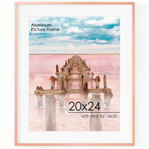 Porta-retratos FLYJOE Alumínio 20x24 cm com tapete 16x20 cm em ouro rosa