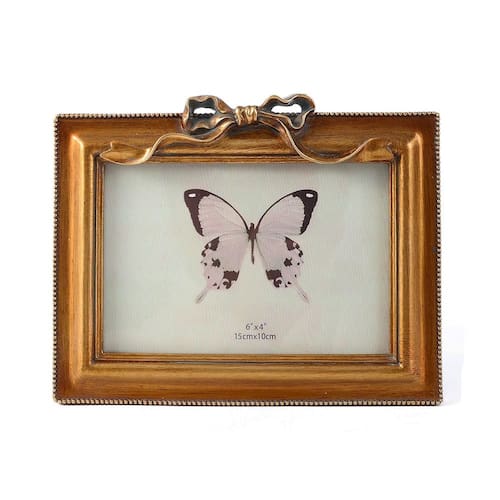 1 - Design antigo requintado: esta moldura vintage de bronze dourado apresenta um design de arco antigo exclusivo com padrões complexos, trazendo um toque de charme antigo e sofisticação a qualquer cômodo. Ideal para decoração de casa de campo ou estilo retrô para casa. - Artesanato premium: Feito de resina de qualidade premium, esta moldura possui vidro real na frente e um luxuoso veludo preto atrás, garantindo que suas fotos estejam protegidas enquanto realçam sua beleza. A estrutura durável garante uso duradouro. - Opções de exibição versáteis: projetada com um gancho e suporte, esta moldura pode ser facilmente pendurada na parede ou exibida em mesas. Esta moldura oblonga antiquada mede 15,7 cm x 19,6 cm e comporta 10 x 15 cm para acomodar fotos ou obras de arte. Seu formato retangular clássico a torna perfeita para mostrar memórias queridas em quartos, salas de estar ou cozinhas. - Ideia de presente atenciosa: seja para um festival, casamento, aniversário, festa, Natal, festival, aniversário, chás de bebê, inauguração de casa, reunião de amigos ou ocasião especial, esta moldura antiga feita à mão é um presente único e memorável. Seu design requintado e apelo vintage certamente encantarão qualquer pessoa que aprecia elegância atemporal. - Peça de decoração multifuncional: além de guardar fotos, esta moldura serve como um destaque decorativo deslumbrante para várias configurações. Seu estilo vitoriano ornamentado complementa qualquer tema de decoração, tornando-a uma adição versátil para sua casa, escritório ou espaço de eventos.