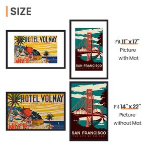 - Design de tamanho duplo: a moldura preta de 14 x 22 polegadas é perfeita para pôsteres de 11 x 17 com tapete ou 14 x 22 sem tapete. O tamanho da tela será 0,5 polegada menor que o tamanho da foto para melhor estabilizar a foto e evitar que ela caia.
