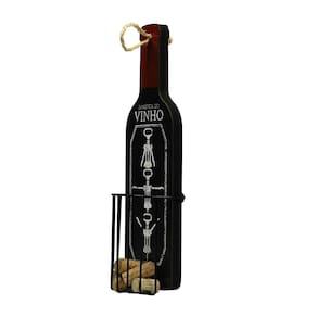 Porta Rolhas Garrafa de Vinho - MDF Lindo Porta Rolhas de Garrafa de Vinho, o Porta Rolha é no formato de uma garrafa de vinho, fabricado em MDF, o compartimento onde serão amarzenadas as rolhas é em metal na cor preta. Material: MDF / Metal Cor: Preto Ficha técnica - Largura: 11 - Profundidade: 8 - Produto: Porta Rolhas Garrafa de Vinho - MDF - Cor: Preto - Material: MDF - Altura: 38 - : 90 dias - Porta Rolhas Garrafa de Vinho - MDF: Fabricado em MDF e Metal o formato deste Porta Rolhas lembra uma garrafa de vinho, este produto é um verdadeiro Charme.