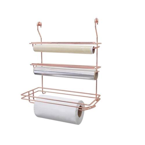 Porta Rolo Triplo Serrilhado Este produto é confeccionado em aço cobreado. Tem 3 encaixes, onde 2 deles possuem serrilha para o picote de papel alumínio, PVC ou papel manteiga. O terceiro encaixe não possui serrilha e acomoda especificamente rolo de papel toalha, que já tem um picote pré-feito. Para uso em barra de sustentação redonda. Não acompanha barra tubular. Fabricante: Jomer Material: Aço Cobreado Medida do produto: 330 x 380 x 170 mm Marca: Jomer Aramados