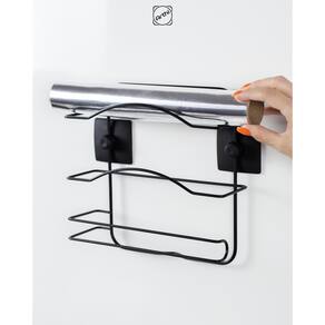 Porta Rolos Triplo Arthi Black - Fixação Adesiva (Sem Furos) O Suporte para 3 Rolos de Cozinha (Ref. 3439) da Arthi é a solução de parede perfeita para manter os três principais rolos organizados, acessíveis e fora da bancada. Utilizando o sistema de adesivo de alta performance 3M, ele garante a fixação segura sem a necessidade de perfurar azulejos ou armários. Características Físicas e Funcionais: Organização 3 em 1: Projetado para armazenar o papel-toalha (na haste inferior), o papel alumínio e o filme de PVC (plástico filme) nos compartimentos superiores, otimizando o espaço da sua cozinha. Instalação Sem Furos: Fixação segura através de 2 suportes adesivos, preservando o revestimento da parede. Alta Capacidade de Carga: Suporta até 1,4 kg (quilo e quatrocentos gramas), oferecendo estabilidade para rolos grandes e pesados. Estilo Moderno: Acabamento na cor preta (Black) sobre Aço Carbono, que confere um visual contemporâneo e discreto. Uso: Exclusivo para Cozinha. Marca: Arthi (Ref. 3439). Especificações Técnicas: Linha: Cozinha Funcionalidade: Suporte de parede para 3 rolos (papel toalha, alumínio e filme). Cor: Preto (Black). Capacidade de Carga: 1,4kg. Dimensões: Comprimento 25,5 X Largura 8 X Altura 23cm. Suportes: 2 suportes para fixação.