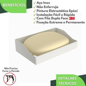 O Porta Sabonete Adesivo Dupla Face foi projetado para quem não quer furar a parede e busca por qualidade na fixação e boa aderência em ambientes molhados. Prezando pela sofisticação e elegância, cada traço do produto foi cuidadosamente desenhado para deixar seu banheiro com um visual clean e sofisticado. Com um design minimalista, o preferido pelos arquitetos nos últimos tempos, o Porta Sabonete é fabricado utilizando aço inox com acabamento em Pintura Eletrostática Epóxi proporcionando maior durabilidade, resistência e garantindo que não ocorrerá oxidação nem ferrugem. A fixação é feita com fita dupla face da marca 3M produzida sob medida personalizada para o produto, garantindo mais firmeza e estabilidade. Após remover a fita e colar o produto na parede, aguarde 20minutos e em seguida o produto já pode ser utilizado. BENEFÍCIOS Fixação Extrema e Permanente Substitui Parafusos, sem fazer Furos e Sujeiras Aplicação Fácil, Rápida e Segura Acabamento Premium: Corte Realizado à Laser Material de Aço Inox Resistente a Água Não Enferruja e não sofre oxidação ESPECIFICAÇÕES TÉCNICAS Material: Aço Inox Acabamento: Pintura Eletrostática Epóxi Cor: Branco Tipo de Fixação: Fita Dupla Face MEDIDAS Altura: 3,5cm Largura: 12cm Profundidade: 7,5cm ITENS INCLUSOS 1 Porta Sabonete com Fita Dupla Face Marca: S3GShop