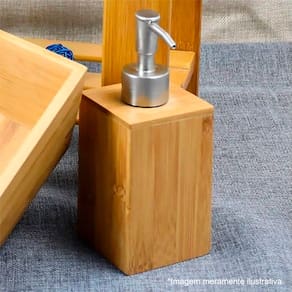 O porta sabonete líquido é um acessório indispensável e também pode ser utilizado com álcool em gel. O bambu possui um bactericida natural em suas fibras, que previne e combate as bactérias. São utensílios ecologicamente corretos, duráveis e resistentes,