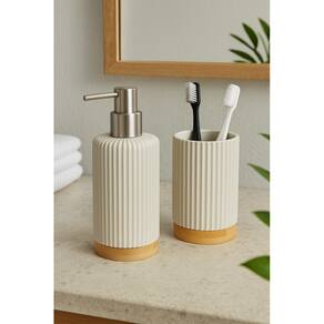 Eleve o visual do seu banheiro com este elegante porta sabonete líquido em poliresina, desenvolvido para unir estilo, durabilidade e praticidade. Sua capacidade de 250 ml é ideal para uso diário, enquanto o detalhe em bambu acrescenta um toque natural e sofisticado ao ambiente. Com design moderno, acabamento fosco e cor bege, o dispensador combina facilmente com diferentes estilos de decoração. A estrutura em poliresina garante resistência e estabilidade, evitando quedas e proporcionando longa vida útil.