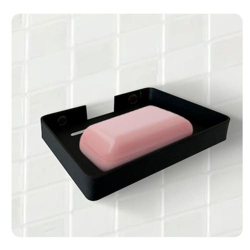 Porta sabonete de parede saboneteira banheiro Seja bem-vindo a belo lar. ------------------------------------------------------------------------------------------------------------------- ------------------------------------------------------------------------------------------------------------------- Saboneteira suporte para sabonete de aluminio. Material: aço inox e alumínio. Acabamento: preto fosco alta qualidade Alta qualidade, não enferruja. Produto acompanha parafusos e buchas adequadas para instalação. Fácil instalação. Marca: Belo Lar