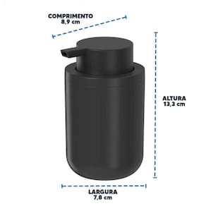 O suporte para sabonete líquido preto da Ou possui capacidade de 300ml, fabricado em plástico PS material durável e resistente, que o torna de fácil higienização e prático de usar. Possui válvula pump com dosador econômico, que mantém o sabonete líquido protegido e longe de sujeiras. Conta ainda com design minimalista, bordas arredondadas e acabamento fosco que deixam o ambiente bonito e organizado.