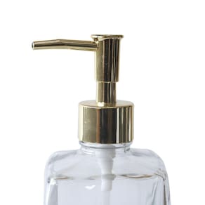 Porta sabonete líquido em vidro com estampa frontal e bico dosador com acionamento tipo pump que permite o controle e evita o desperdício de líquido.