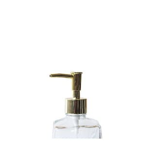 Porta sabonete líquido em vidro com estampa frontal e bico dosador com acionamento tipo pump que permite o controle e evita o desperdício de líquido.