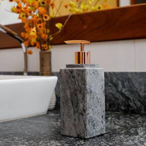 Porta Sabonete Líquido Dispenser em Pedra Sabão Rosê 22x7cm