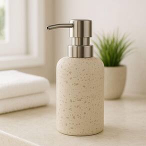 Porta Sabonete Líquido Dispenser Pedra Bege Fosca Off White de Poliresina 300ml Mart