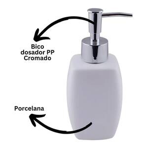 O corpo em porcelana branca transmite leveza e higiene, enquanto o bico dosador em acabamento cromado proporciona um toque moderno e facilita o uso diário. Ideal para sabonete líquido, detergente ou loções, é uma excelente escolha para uso residencial ou em ambientes comerciais.