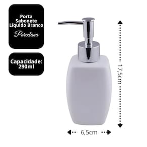 O corpo em porcelana branca transmite leveza e higiene, enquanto o bico dosador em acabamento cromado proporciona um toque moderno e facilita o uso diário. Ideal para sabonete líquido, detergente ou loções, é uma excelente escolha para uso residencial ou em ambientes comerciais.