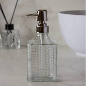 Produzido em vidro de alta qualidade e equipado com válvula metálica resistente, o dispenser oferece praticidade no uso diário, proporcionando dosagem precisa e higiene com estilo.