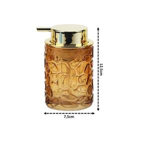 Toque de Luxo no Seu Banheiro! Porta Sabonete Líquido em Vidro Âmbar Relevo com Tampa Touch Dourado - 260ml