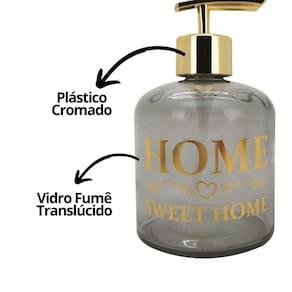 Porta Sabonete Líquido Vidro Sweet Home Fumê e Dourado 350ml - Yazi