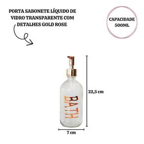PORTA SABONETE LÍQUIDO DE VIDRO TRANSPARENTE E DETALHES GOLD ROSE 500ML - BRYZ10193.