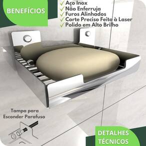 Com um design minimalista, o preferido pelos arquitetos nos últimos tempos, o Porta Sabonete é fabricado utilizando aço inox com acabamento polido em alto brilho proporcionando maior durabilidade, resistência e garantindo que não ocorrerá oxidação nem ferrugem.