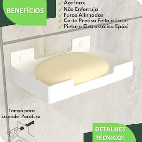 Com um design minimalista, o preferido pelos arquitetos nos últimos tempos, o Porta Sabonete é fabricado utilizando aço inox com acabamento em Pintura Eletrostática Epóxi proporcionando maior durabilidade, resistência e garantindo que não ocorrerá oxidação nem ferrugem.