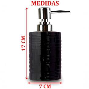 Características Gerais do Produto: - Material: Cerâmica - Modelo: Saboneteira Líquida - Cor: Preto - Dimensões aproximadas: Altura 17cm X Diâmetro 7cm - Capacidade em litros: 300ml Garantia: - Garantia contra no