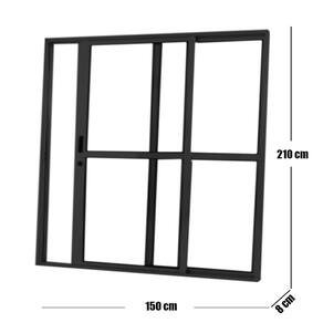 Você encontra essa porta na cor preta e no tamanho 210cm de altura por 150cm de largura, com 11cm de espessura e peso de 49kg. Ela possui 2 folhas, sendo 1 de correr e 1 fixa no lado direito, com passagem no lado esquerdo.